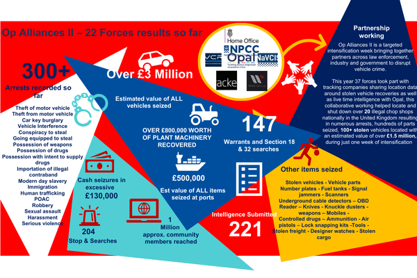 Operationally, November has also been about evidence. Following October’s Op Alliances initiative, the NVCRP has been able to share results from data collated by Opal that underline why coordinated, funded enforcement matters. With Home Office funding sourced by the NVCRP, 37 forces across England and Wales have been able to target the organised networks behind vehicle theft, cloning, dismantling, and export. The emerging picture is one of meaningful disruption: arrests made, stolen vehicles recovered, and criminal infrastructure uncovered. It’s not just a list of numbers; it’s proof that when policing, government and industry pull in the same direction, organised crime groups lose ground.